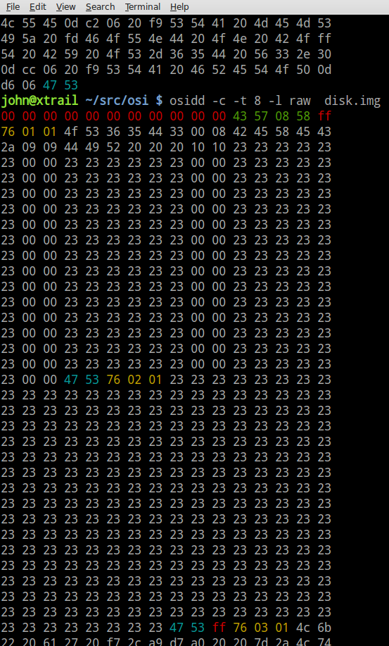 john@xtrail$ osidd -e -t 0-4 disk.img